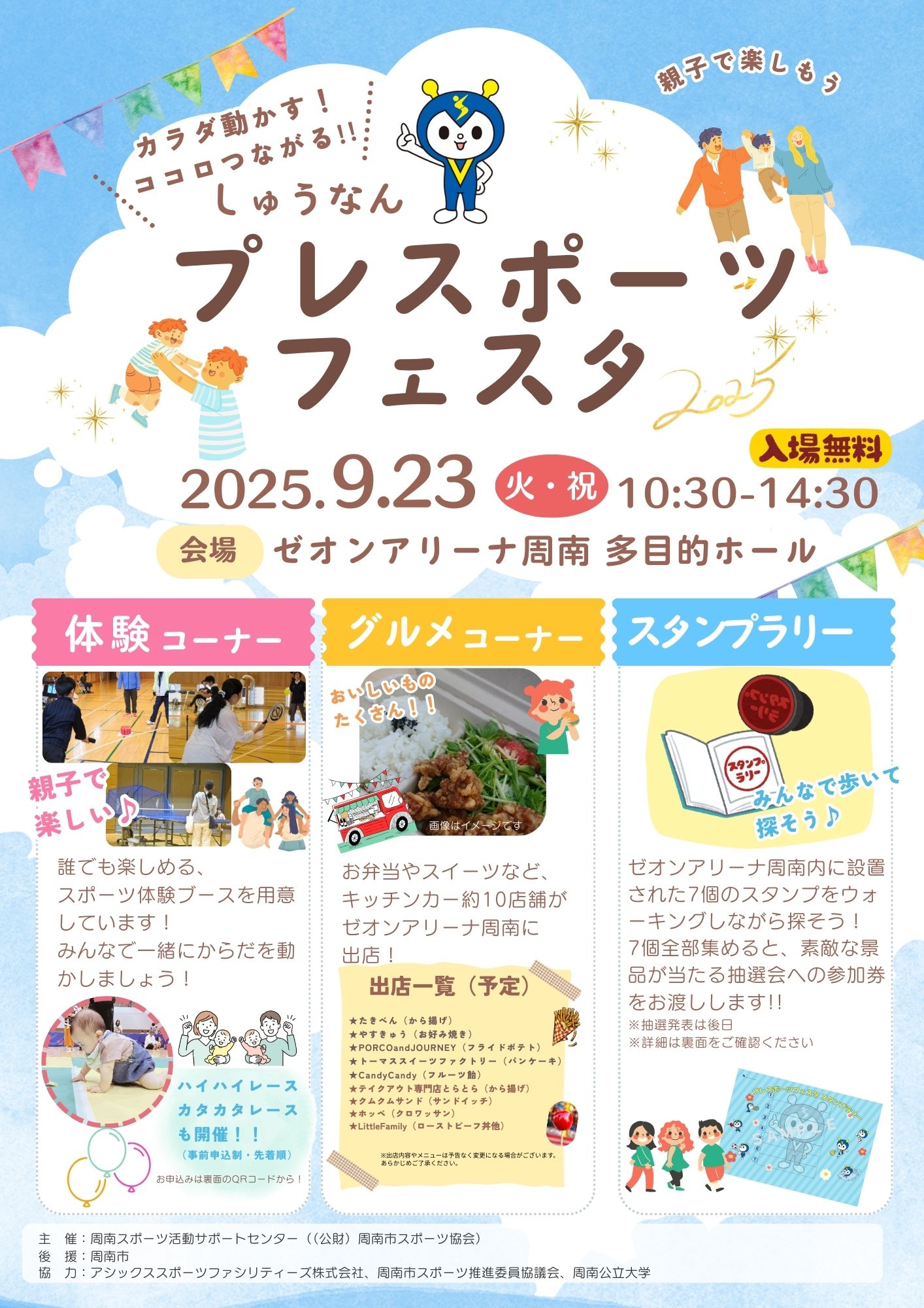 ※お渡しした抽選券の抽選の結果は10/13(月・祝)開催の『しゅうなんスポーツフェスタ2025』総合案内にて発表します。当選者への景品交換は抽選券と引き換えになるため、当日必ず【抽選券】をご持参ください。
