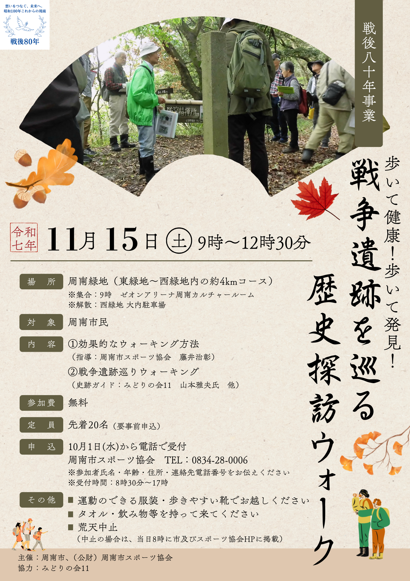 戦後80年にあたり、本市の戦争の歴史を知り、戦争の悲惨さ、平和の尊さなどについて考えるとともに、正しいウォーキング方法を学び、